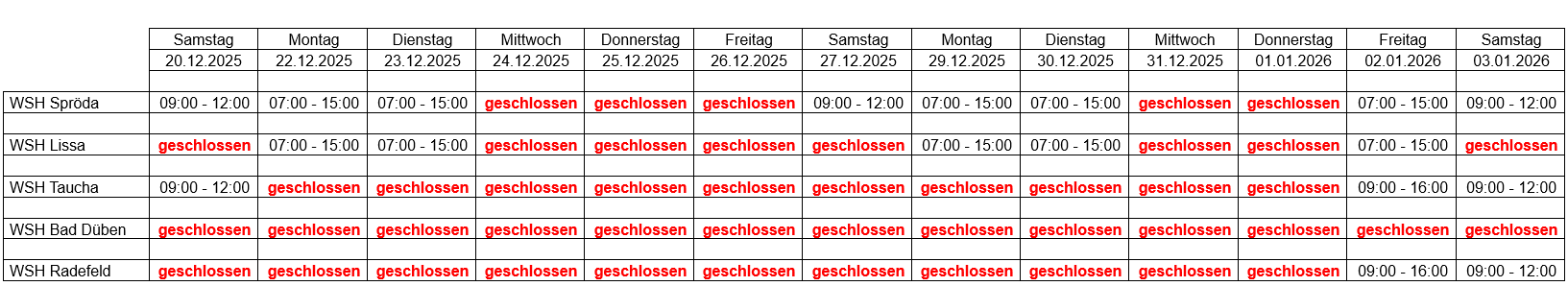Öffnungszeiten Wertstoffhöfe Jahreswechsel